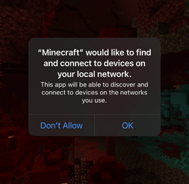 With the update of iOS 14, Apple has introduced many new privacy features. For example, players are prompted with a notification upon opening Minecraft: Bedrock Edition for the first time. “Minecraft would like to find and connect to devices on your local network.”